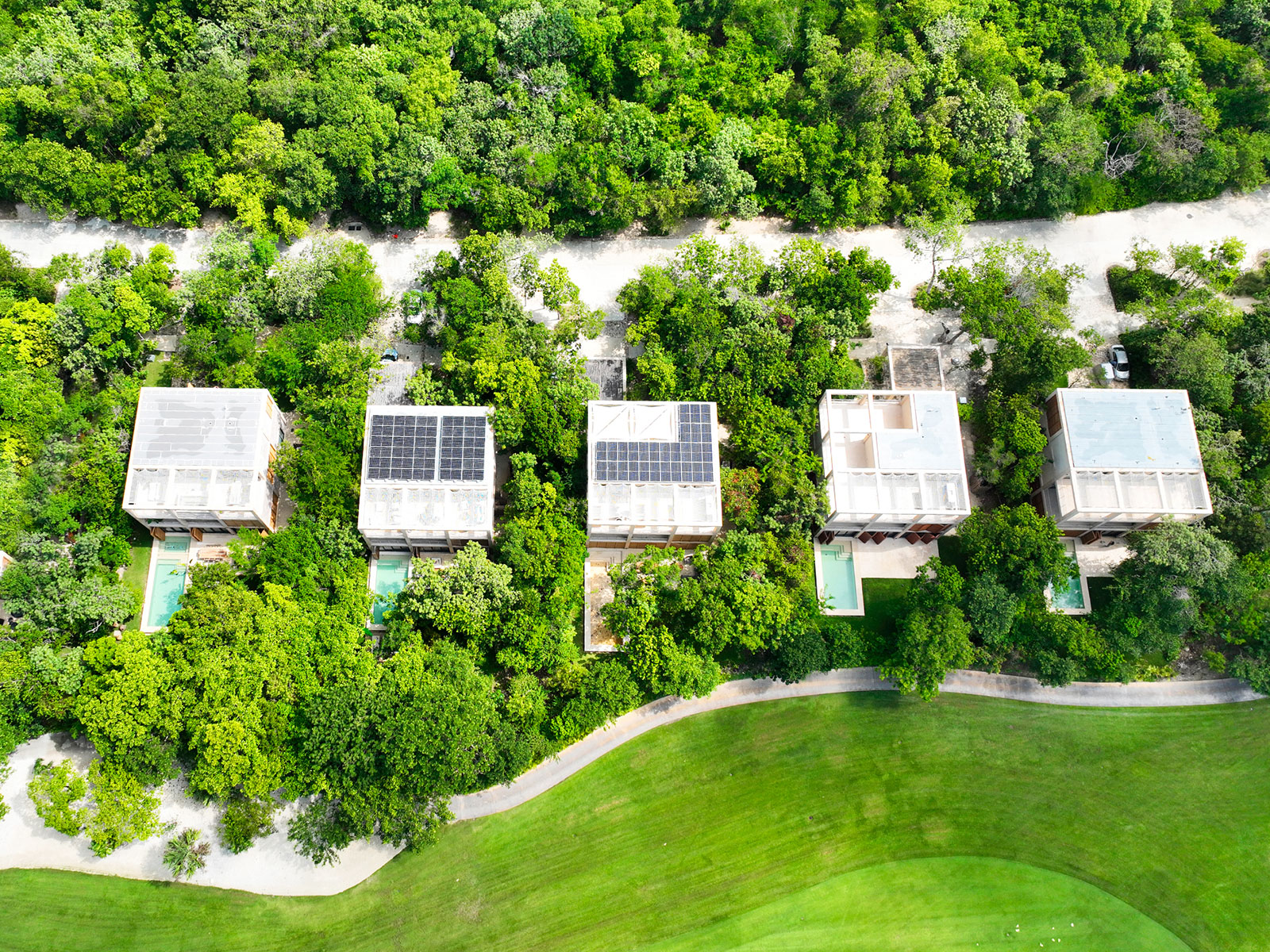 Palm Villas is located within Corasol, the most important private residential gated community in the Riviera Maya, with a golf course and private access to the beach. Designed by Sordo Madaleno, one of the most important architectural firms in Mexico. Palm Villas has 35 exclusive villas with a design inspired by the Rubik's Cube, perfect for people looking for privacy and luxury. It has green views surrounding the Gran Coyote Golf Course.