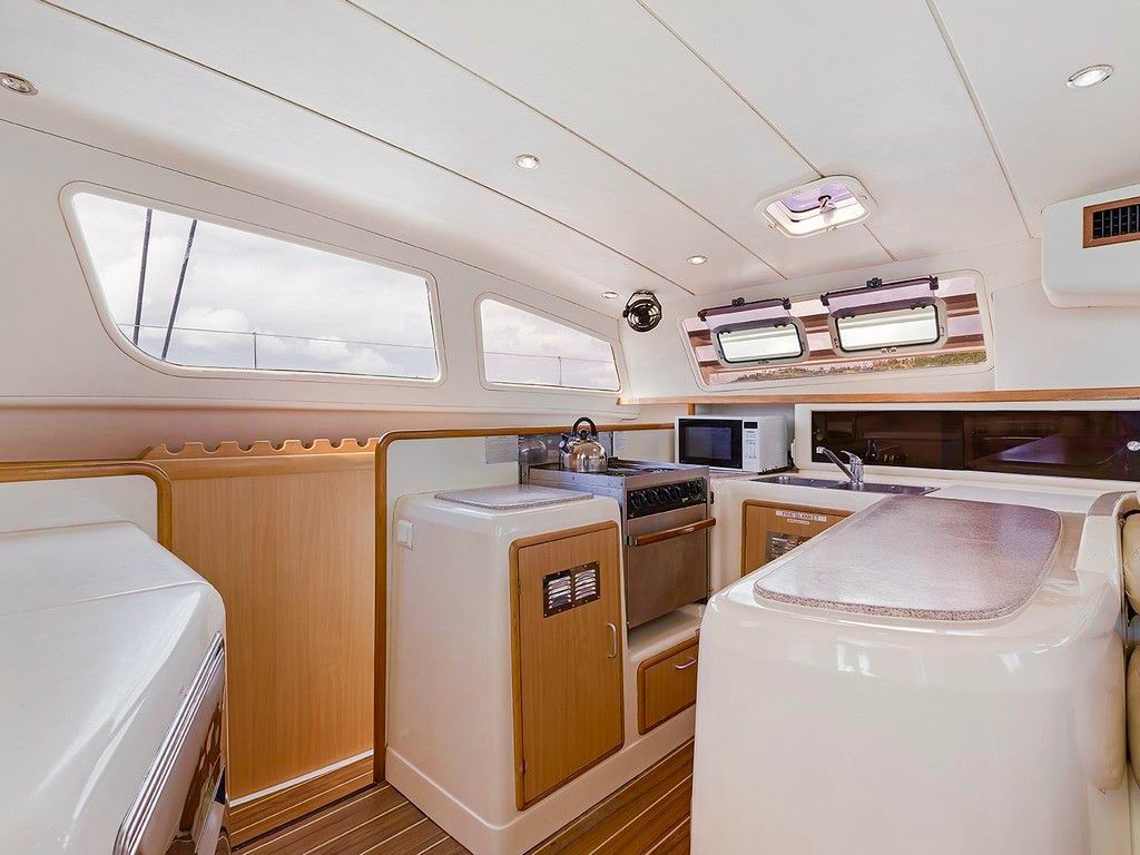Un catamarán diseñado para disfrutar el mar de forma relajada y sofisticada, con espacios amplios y estables ideales para grupos.