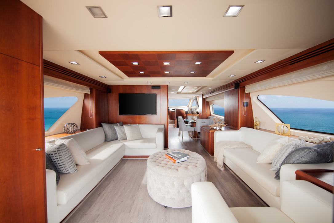 Yate de lujo con diseño interior elegante, amplias áreas sociales y excelente navegación